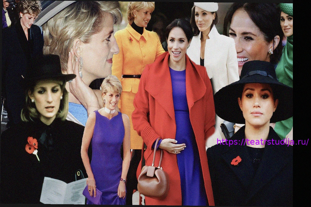 Взгляните на подборку фотографий, где Меган, герцогиня Сассекская, отдавала дань уважения покойной принцессе Диане, искусно вплетая элементы её стиля в свои наряды.