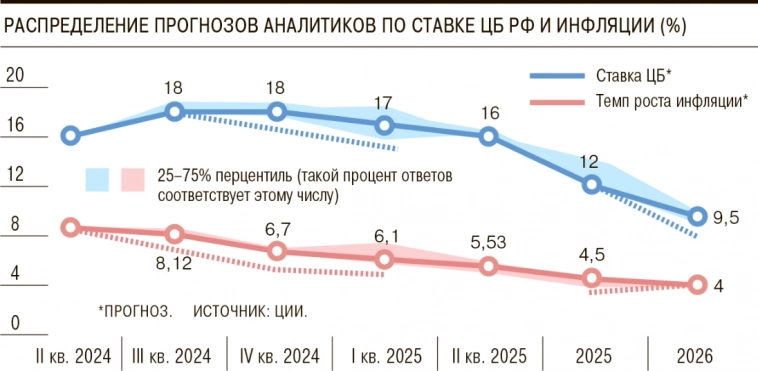 Эксперты Центрального банка России пересмотрели свои макроэкономические прогнозы на 2025 год. Согласно последним данным, ожидаемый уровень инфляции увеличен до 6,6%, что на 0,2 процентных пункта выше предыдущей сентябрьской оценки в 6,4%. Кроме того, средняя ключевая ставка, по оценкам регулятора, также покажет рост, достигнув 19,2% против ранее прогнозируемых 19%.