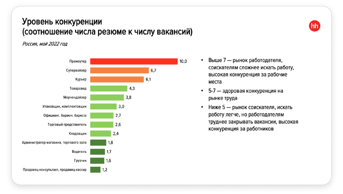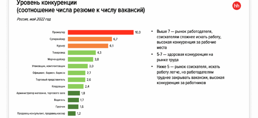 По информации hh.ru, несмотря на общее замедление роста числа вакансий, в некоторых отраслях сохраняется потребность в квалифицированных кадрах. Прежде всего, это розничная торговля, где конкуренция среди соискателей минимальна – всего 1,2 резюме на одну открытую вакансию. Дефицит специалистов также отмечается в сфере медицины и фармацевтики (2,2 резюме на вакансию).
