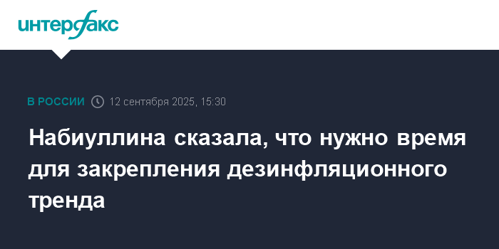Глава Центробанка, Эльвира Набиуллина, заявила, что, хотя инфляцию удалось замедлить, окончательное закрепление дезинфляционного тренда потребует дополнительного времени.