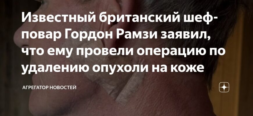Известный британский шеф-повар Гордон Рамзи объявил о недавно перенесенной хирургической операции по удалению новообразования на коже. Кулинар выразил искреннюю благодарность лондонской клинике The Skin Associates за их оперативную и высокопрофессиональную работу.
