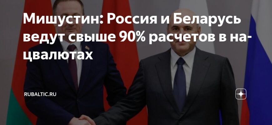 В ходе рабочей встречи премьер-министра Российской Федерации Михаила Мишустина с его белорусским коллегой Александром Турчиным, было заявлено, что более 90% всех взаиморасчетов между двумя государствами теперь осуществляются с использованием национальных валют.