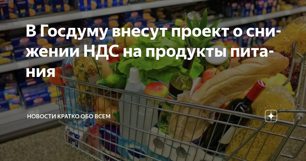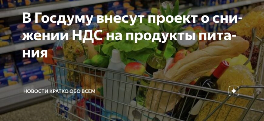 Парламентарии Государственной Думы, представляющие фракцию «Справедливая Россия — За правду», выступили с предложением сократить ставку налога на добавленную стоимость (НДС) для продовольственных товаров. Предлагается снизить НДС с текущих 10% до 5%. Инициатива принадлежит руководителю партии Сергею Миронову. Согласно сообщению пресс-службы партии, переданному агентству «РИА Новости», соответствующий законопроект планируется внести на рассмотрение в Госдуму 30 июня.