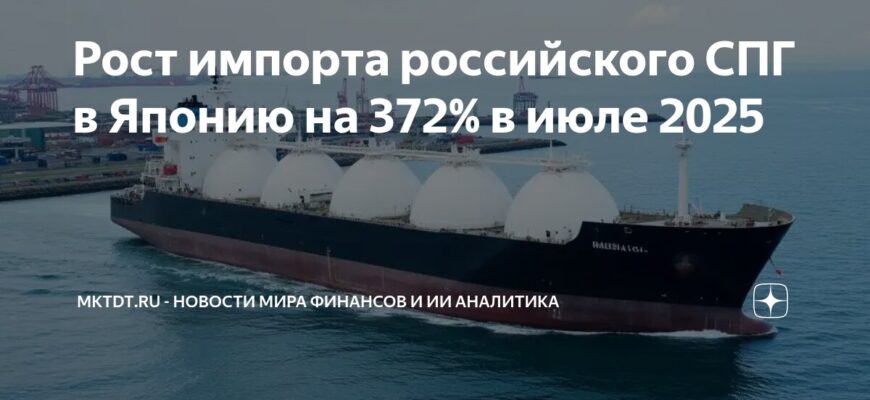 По данным Министерства финансов Японии, в июле страна значительно нарастила импорт российского угля и сжиженного природного газа (СПГ). Поставки СПГ из России возросли на впечатляющие 372% в годовом выражении, а импорт угля увеличился на 286%.